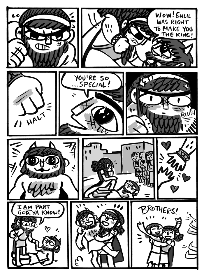 A funky rendering of the beginning of Gilgamesh from Kinoko Evans. Buttons below the screenshots will take you there.